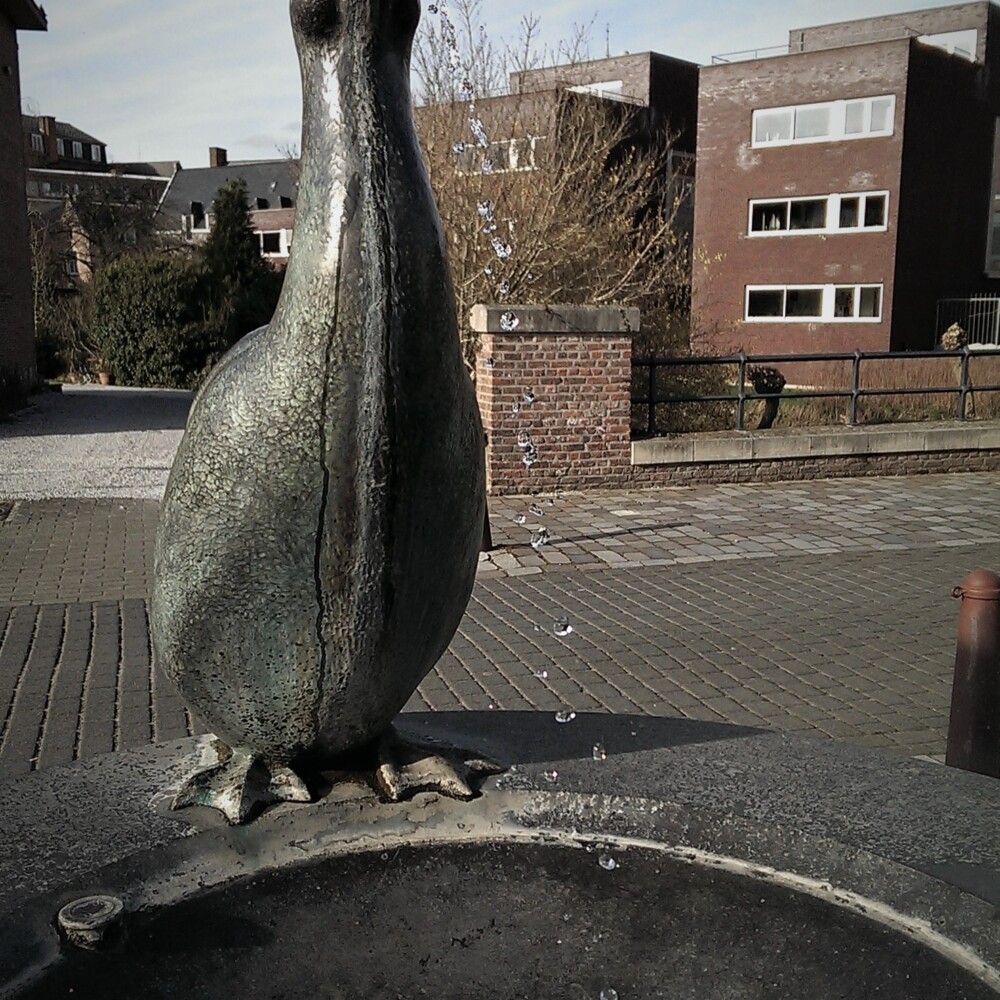 The water fountain on the Redingenstraat that featured a duck by a basin was installed on 9 November 2003. Sculpted by René Rosseel, the duck fountain is actually a wishing well, with the following instructions: